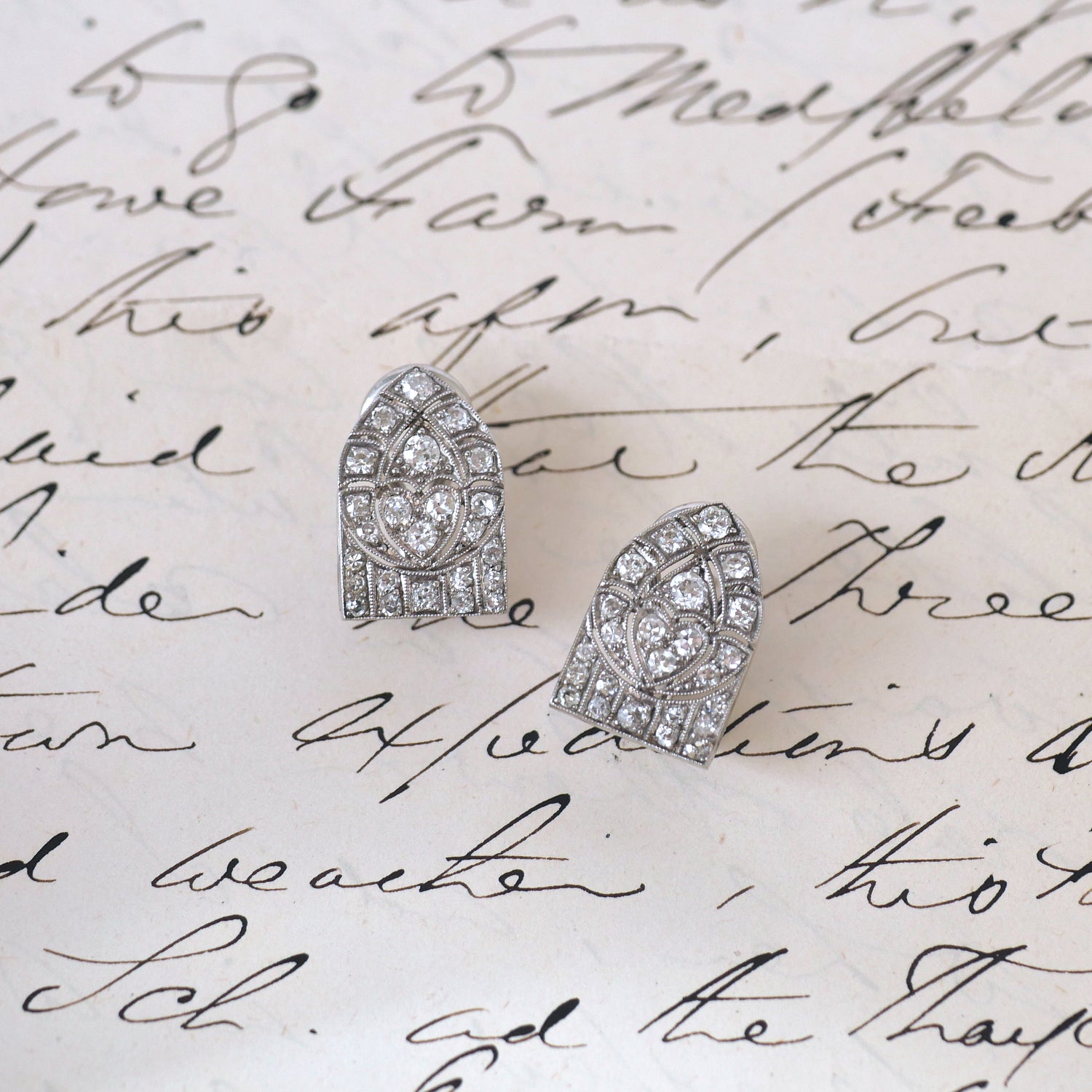Condition Report: Because these earrings are original from 1920 they show slight signs of wear, including slightly lighter milgrain, slight scuff marks on earring backs. We leave antique pieces as is to retain the character of the original design.