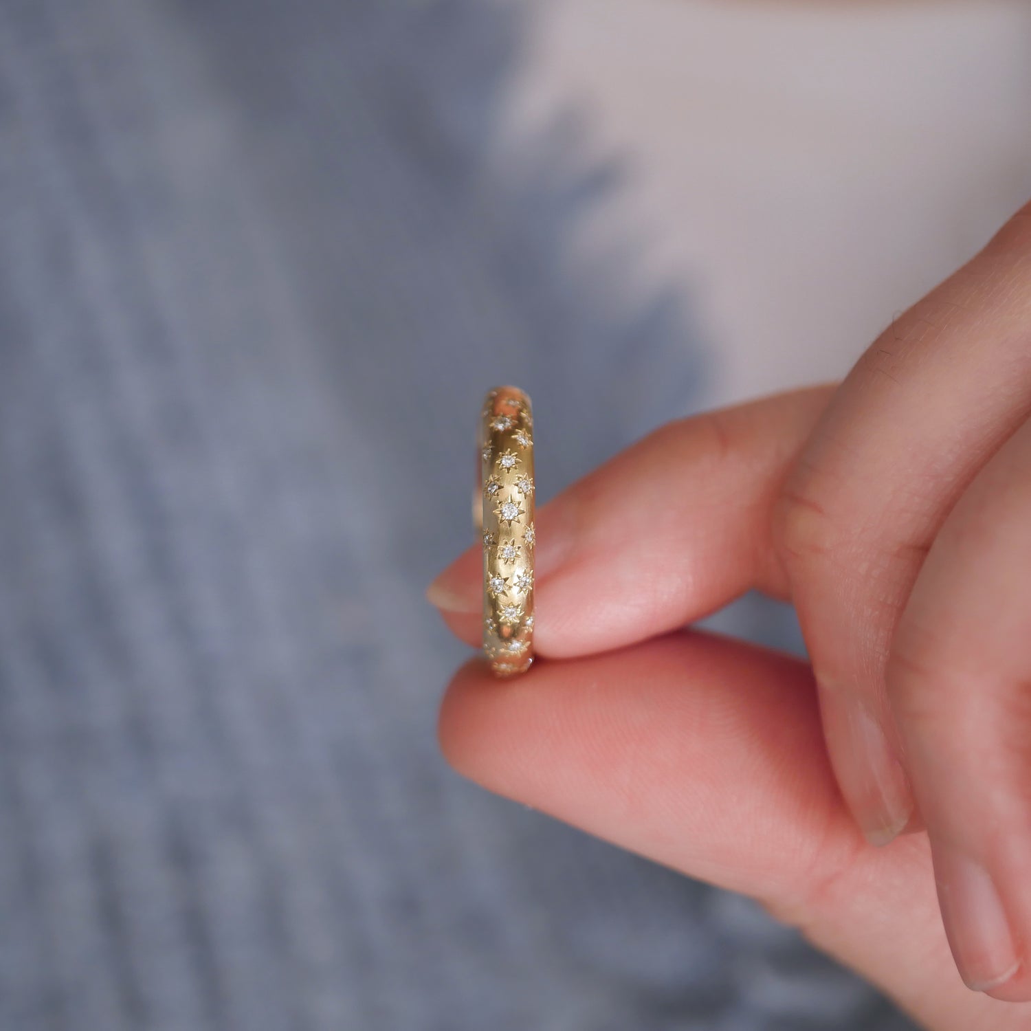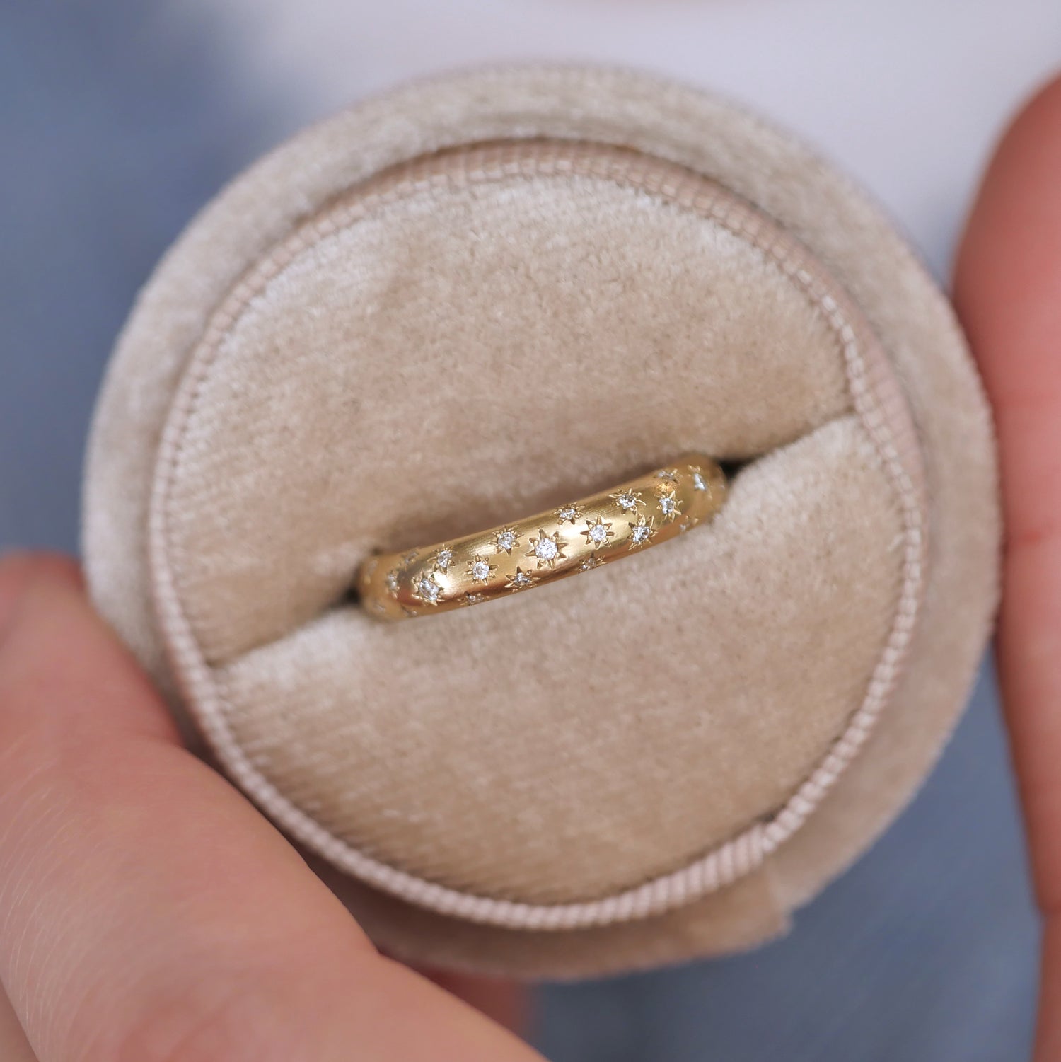 The listed carat weight is based on a US ring size and may vary slightly based on ring size.